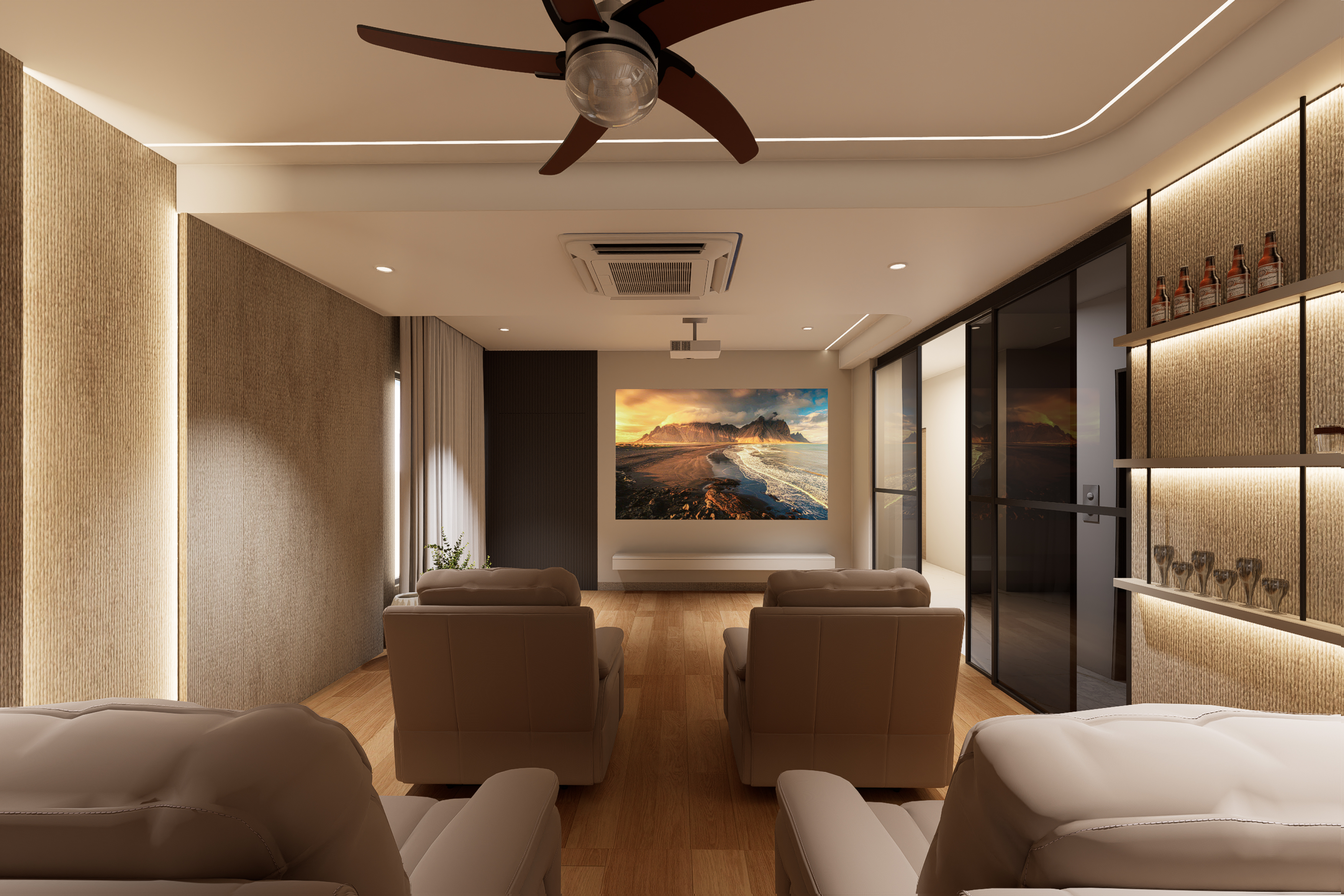 Hyderabad's heat and humidity can affect electronics and comfort during long movie sessions. We plan ventilation that keeps equipment cool, select materials that handle moisture without getting musty, and design layouts that promote air circulation. Your entertainment space stays comfortable even during three-hour epic movie marathons in summer.